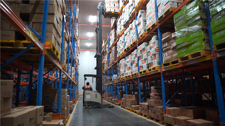 “北京多溫帶城市大冰箱”(北京快行線-華潤萬家干倉改造冷庫項目)冷庫總容量為2.5萬噸,庫高10.5米,分為五個溫度層,涵蓋零下45度至零上18度的所有溫帶,可根據不同客戶儲存商品所需要的環境,隨時對溫度進行靈活調節。央視記者董彬參觀“大冰箱”時曾感到疑惑,2.5萬噸冷庫僅使用幾臺機器如何實現多溫度調節?大森制冷用精妙的制冷系統設計給出了答案。