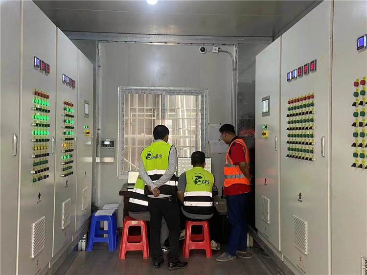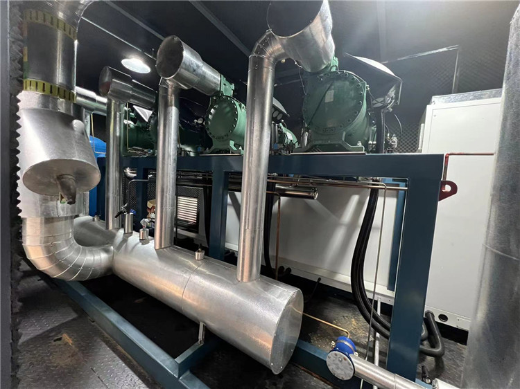 普冷南寧倉庫采用大森氟利昂(R507)直接膨脹供液制冷系統,主機選用螺桿并聯機組,為冷凍、冷藏、低溫穿堂三個溫區提供冷源。制冷機房采用集裝箱式制冷站的形式,完美解決干倉改造中前期設計無制冷機房的痛點。