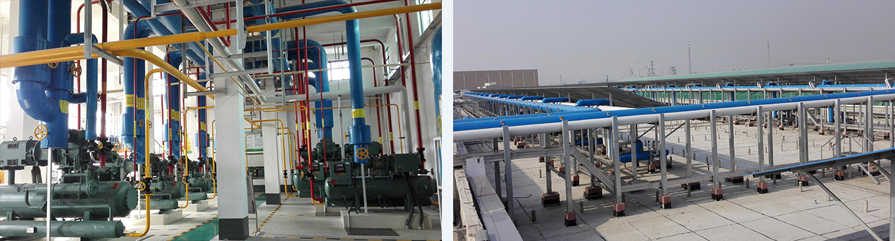 日屠宰量3萬(wàn)頭,年產(chǎn)100萬(wàn)噸,涵蓋凍結(jié)間、預(yù)冷間、凍結(jié)物冷藏間、副產(chǎn)品冷藏間、疑病胴體待查間、冷卻間、平衡間、紅臟預(yù)冷間、副產(chǎn)膘油預(yù)冷間、鮮品暫存間等,采用氨制冷系統(tǒng)、氟利昂制冷系統(tǒng)。末端風(fēng)機(jī)加排管,水沖霜、熱氨沖霜、人工掃霜輔以熱氨排油。